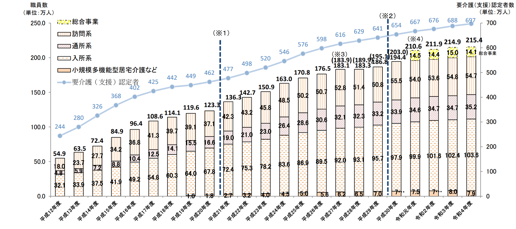 注3:介護職員数には、総合事業のうち従前の介護予防訪問介護等に相当するサービスに従事する介護職員数を含む。