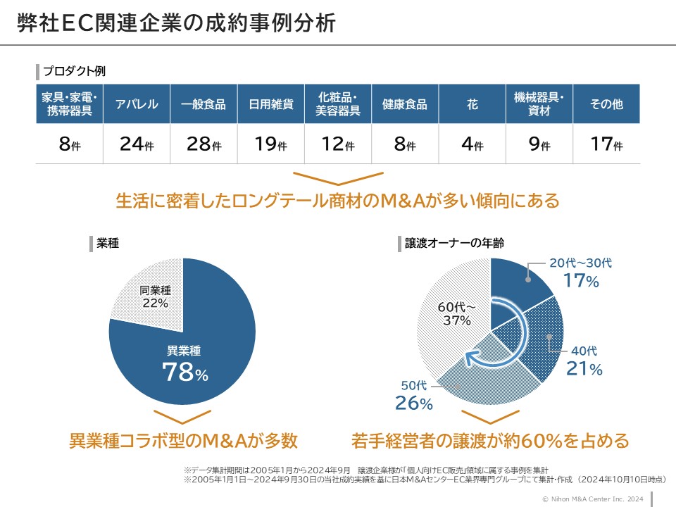 - ・買い手においては、ECノウハウ獲得、商材ブランドの獲得、クロスセルのシナジーなど
