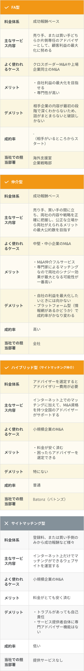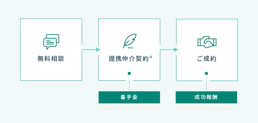 事業・会社を「譲る方」の場合は調査・資料作成開始時、「買う方」の場合は本格的な情報提供開始時に着手金をいただき、成約時に成功報酬という形をいただくという料金体系を採用しています。