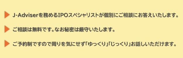 貴社の上場可否、上場前の準備について、上場までのスケジュールやコストについて等、ざっくばらんに且つ具体的にお話しできればと思っております。